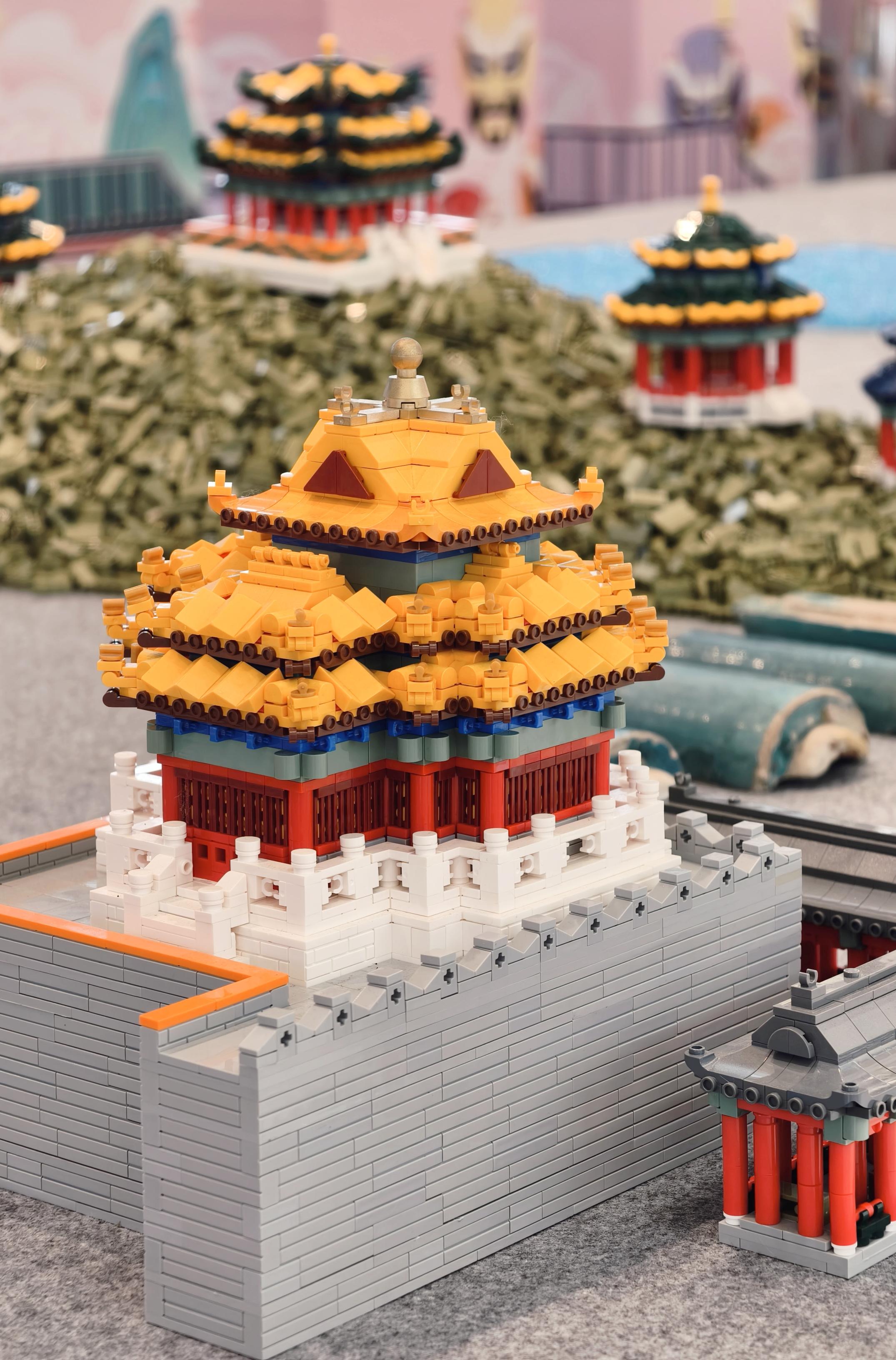 “这是我们最新调整后的积木版北京中轴线,共有31个单体建筑物、构筑物,由16万粒积木组成,铺陈在展台上,长达15米。”积木版北京中轴线设计、制作者蒋步庭告诉记者,与之前的13万粒积木版的中轴线相比,这一版多了故宫角楼、正阳门城楼、正阳门五牌楼、端门等。